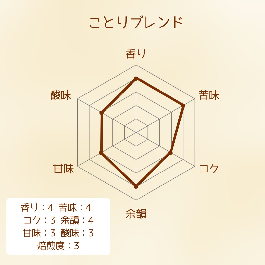 特徴:浅煎りのロースト感で、爽やかなフルーティーさとバランスの取れた味わい。